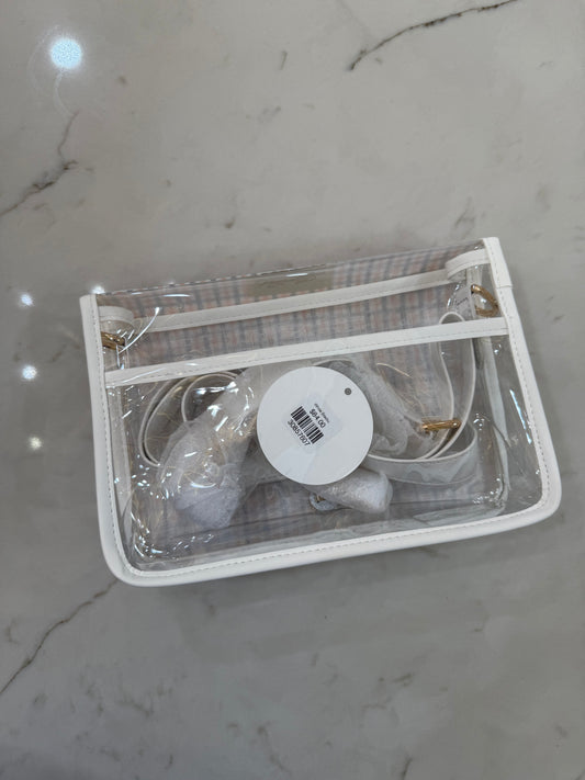 White Stadium Bag-orange gingham-navy lining-white bamboo stick