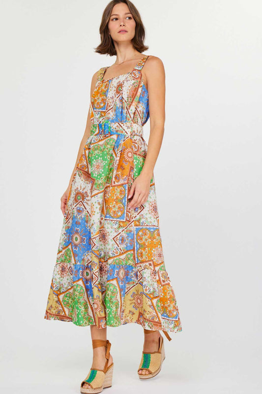 Belted Square Neck Multi Midi