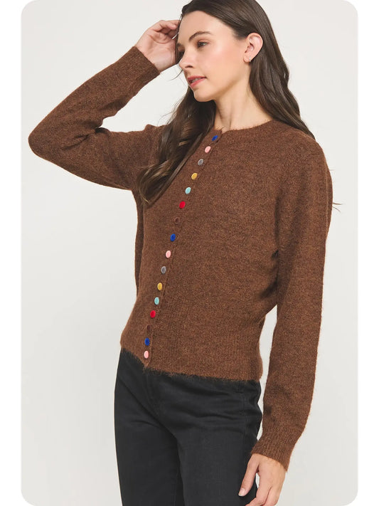 Chocolate Brown Multi Color Button Knit Cardigan