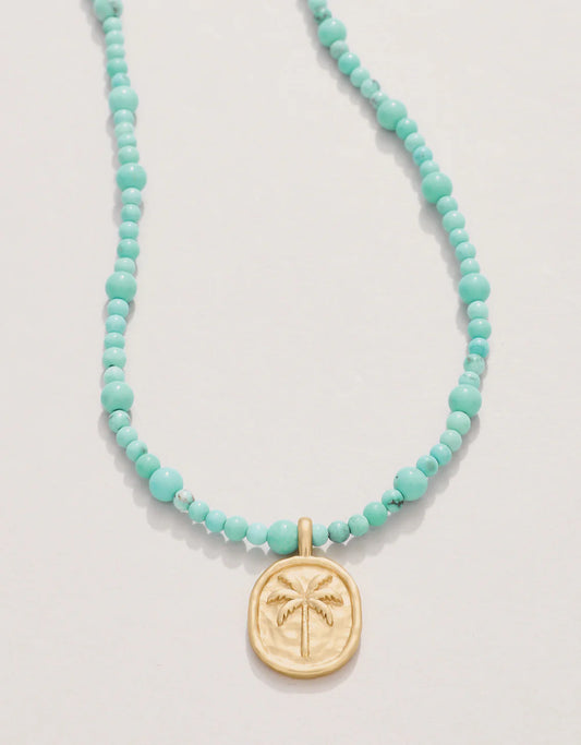 Harmony Beaded Necklace 17" Turquoise/Palm Tree