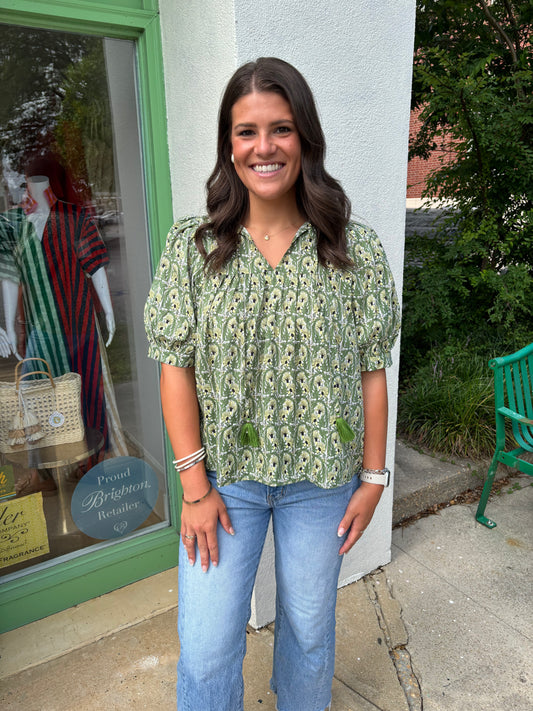 Olive Floral Top