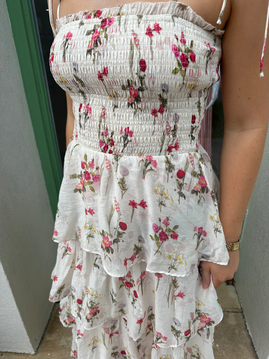 Olive Tiered Floral Midi Dress