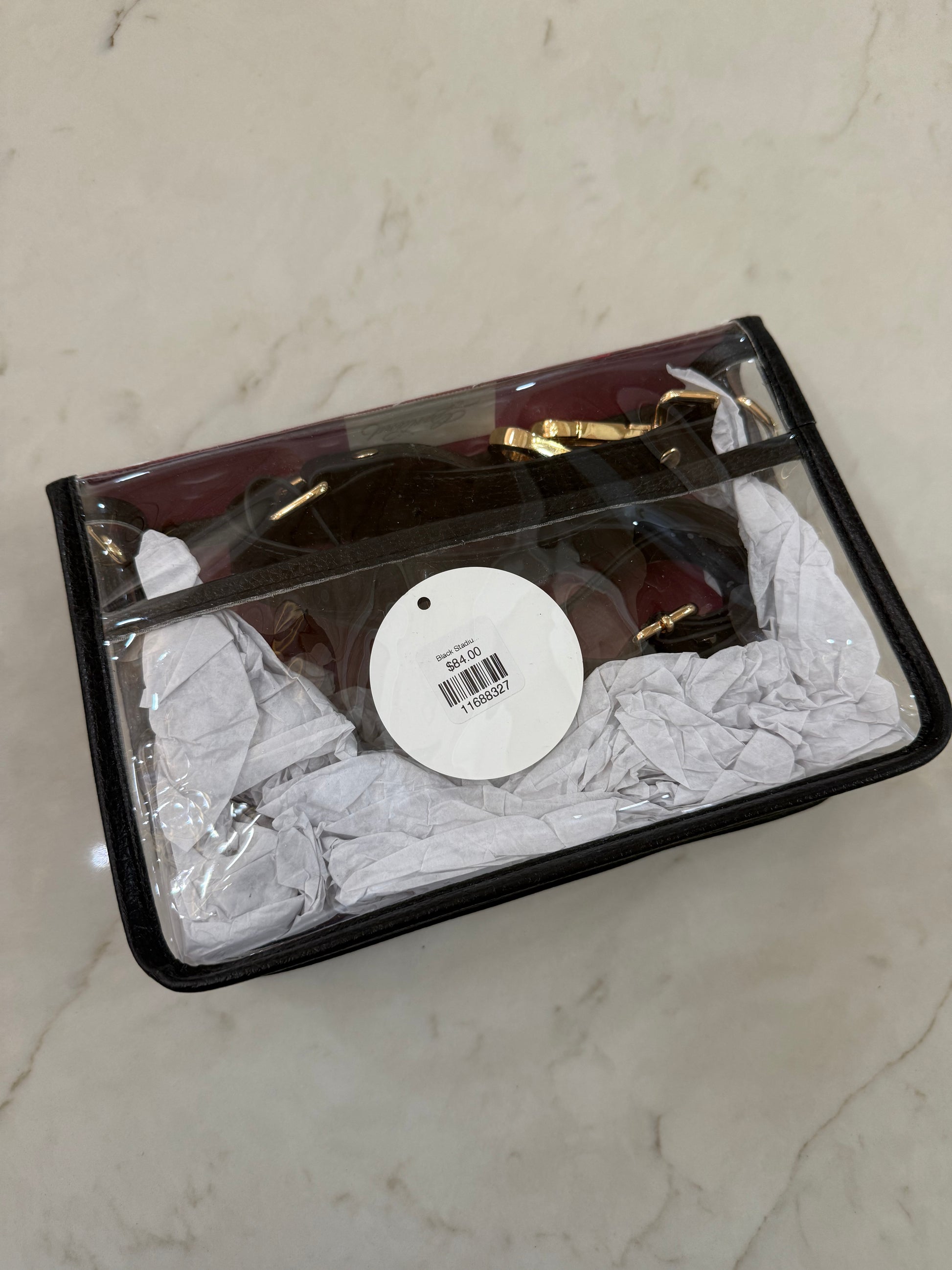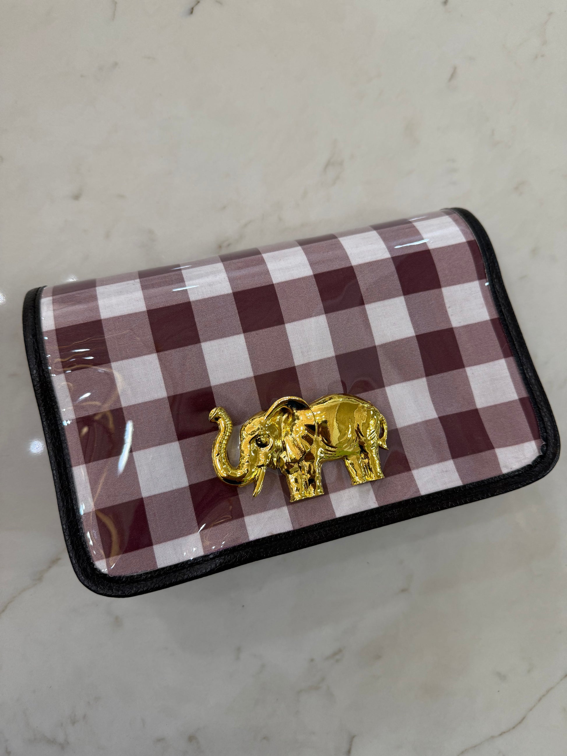 it's clear...that this is the perfect stadium bag! Meeting all standard stadium requirements with 3 of its four sides transparent, this crossbody stadium bag makes a statement like no other! It is adorned with a Gold Elephant, and is trimmed with white faux leather. It comes with an adjustable, coordinating faux white leather strap that is removable. The interior boasts a generous built-in pocket, and a magnetic snap closure. The bag dimensions are 9x5" x 6" x 2.5".