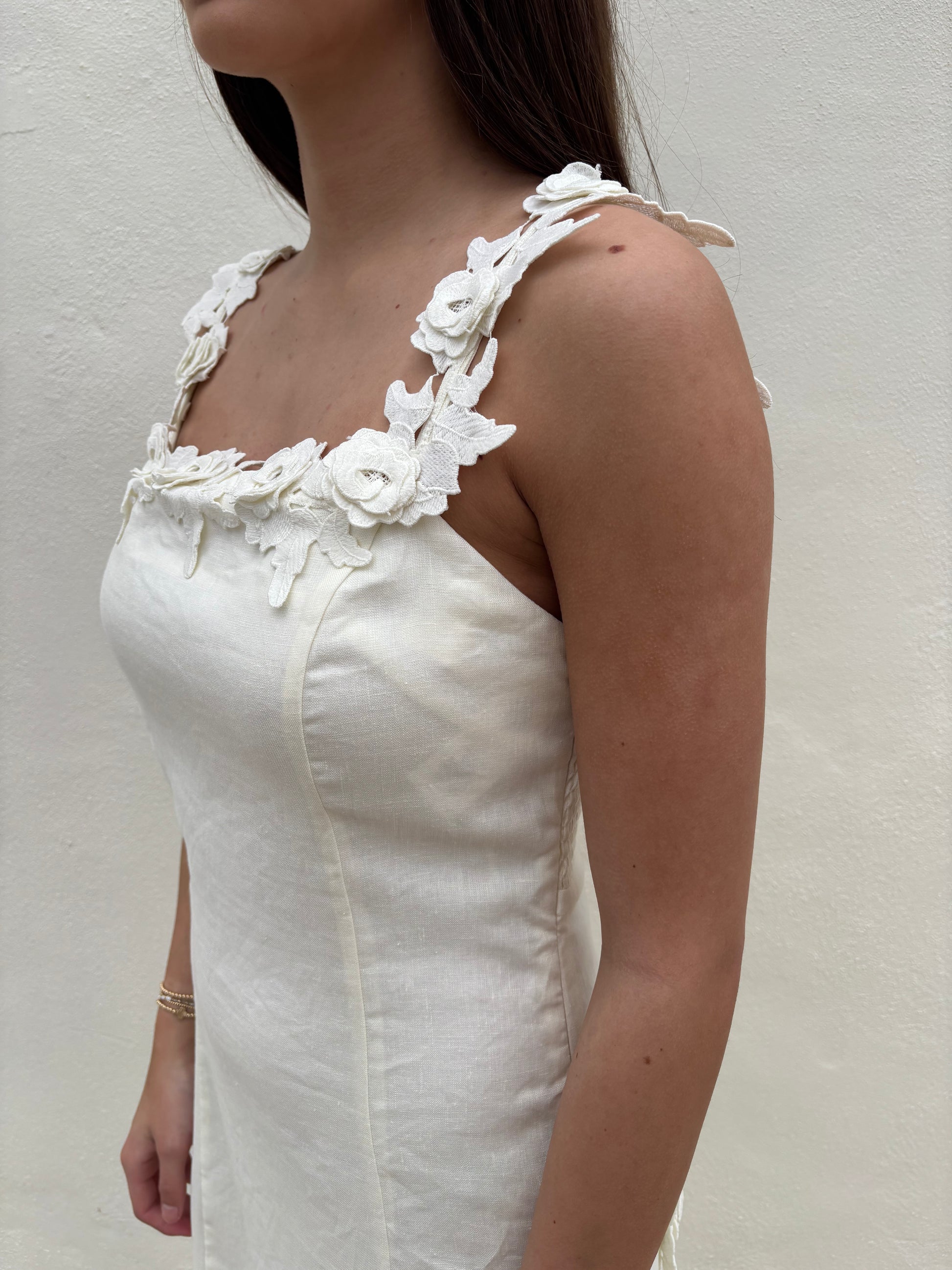 Floral Detail White Linen Maxi