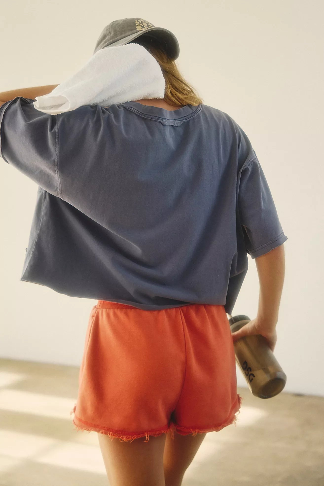 Warm up or cool down with this essential tee, featured in an oversized boxy fit and cropped design with raw-edge seaming throughout for a lived-in look.