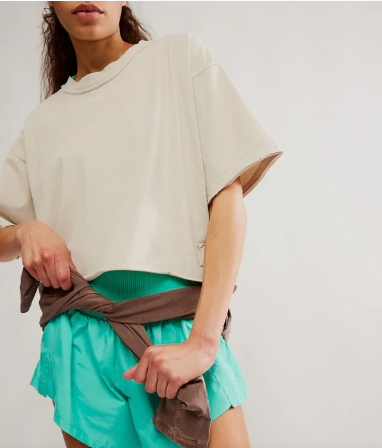 Warm up or cool down with this essential tee, featured in an oversized boxy fit and cropped design with raw-edge seaming throughout for a lived-in look.