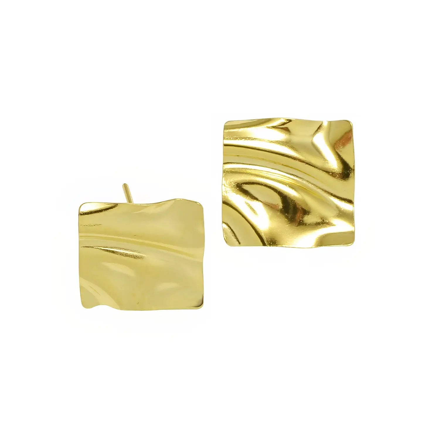 Golden square design earrings • 18k Gold Plated • 0.6" x 0.6"
