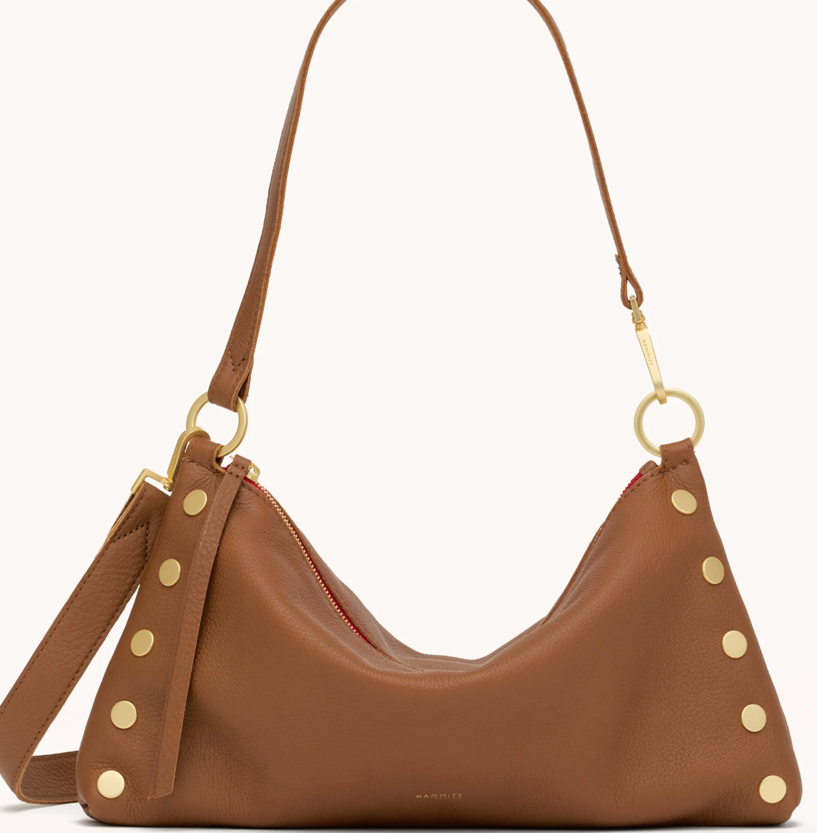 - Crafted with a soft pebbled leather with a hint of shine featuring a warm medium brown hue