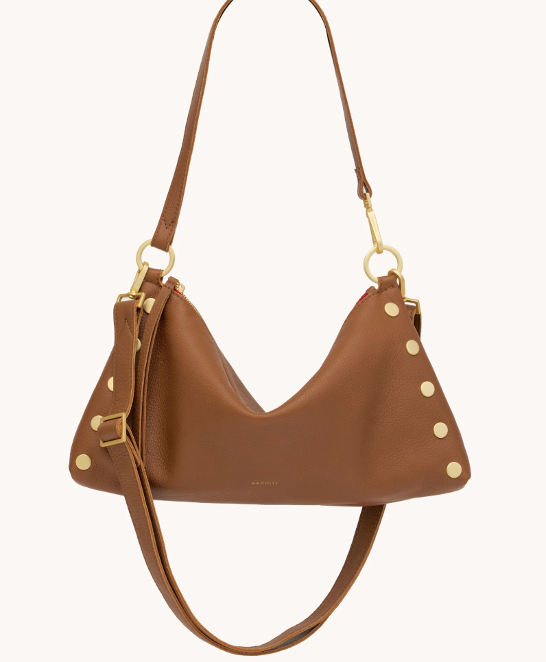 Our newest addition to the Kyle family is the Kyle Med. Featuring a slouchy but current shape, this versatile little number transitions from a wristlet to a shoulder bag in seconds flat. The Kyle also includes a removable and adjustable crossbody strap, so you can go hands-free. Embrace the warm allure of this medium brown hue, enriched with a delicate yellow undertone that adds depth and sophistication to any ensemble. The Kyle Med has the same easy to use features as our best seller - now offered in a large size!