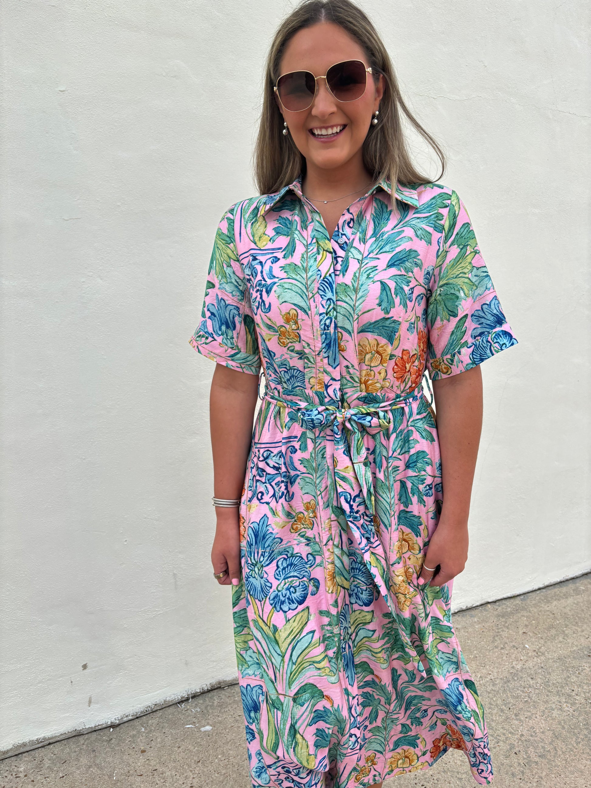 Pink Belted Maxi Multi Floral