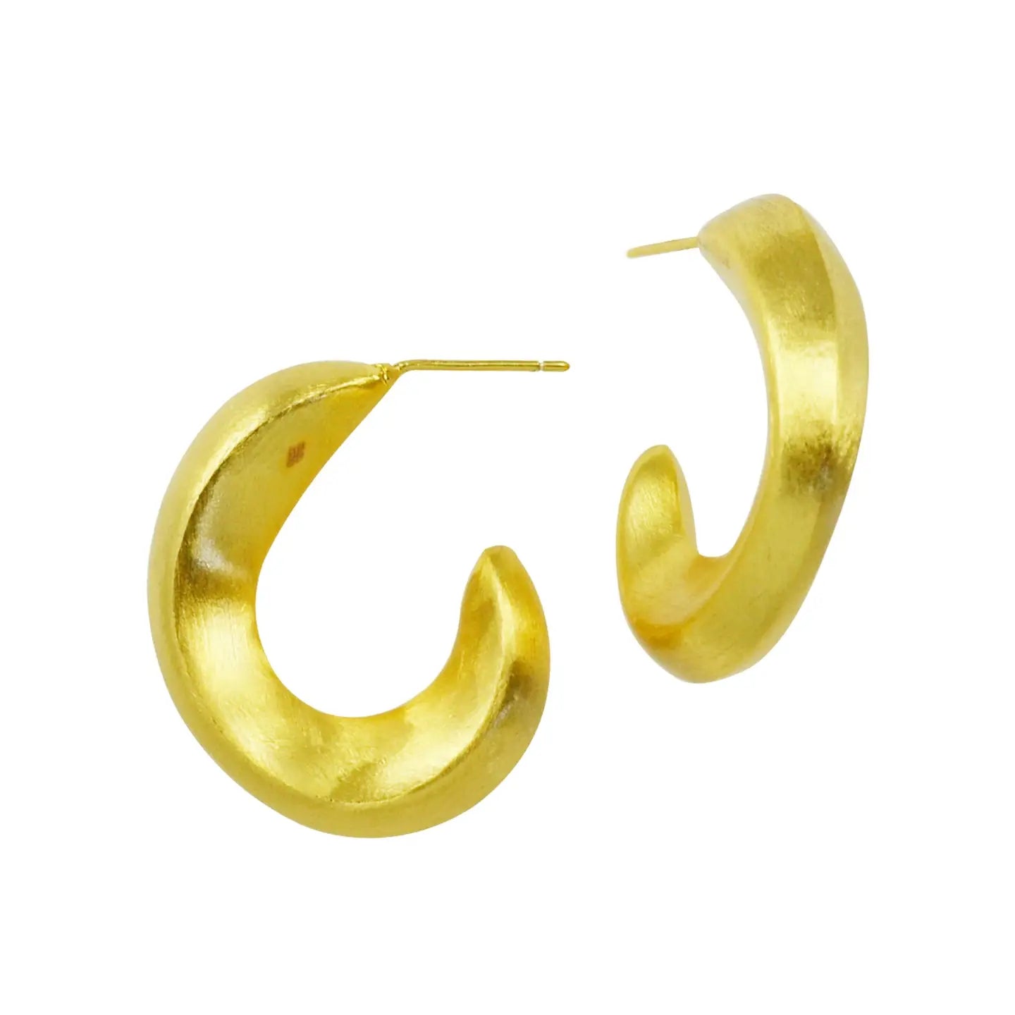 Hoop Earrings • Brushed finish • 18k Gold Plated • 1.2" x 1"