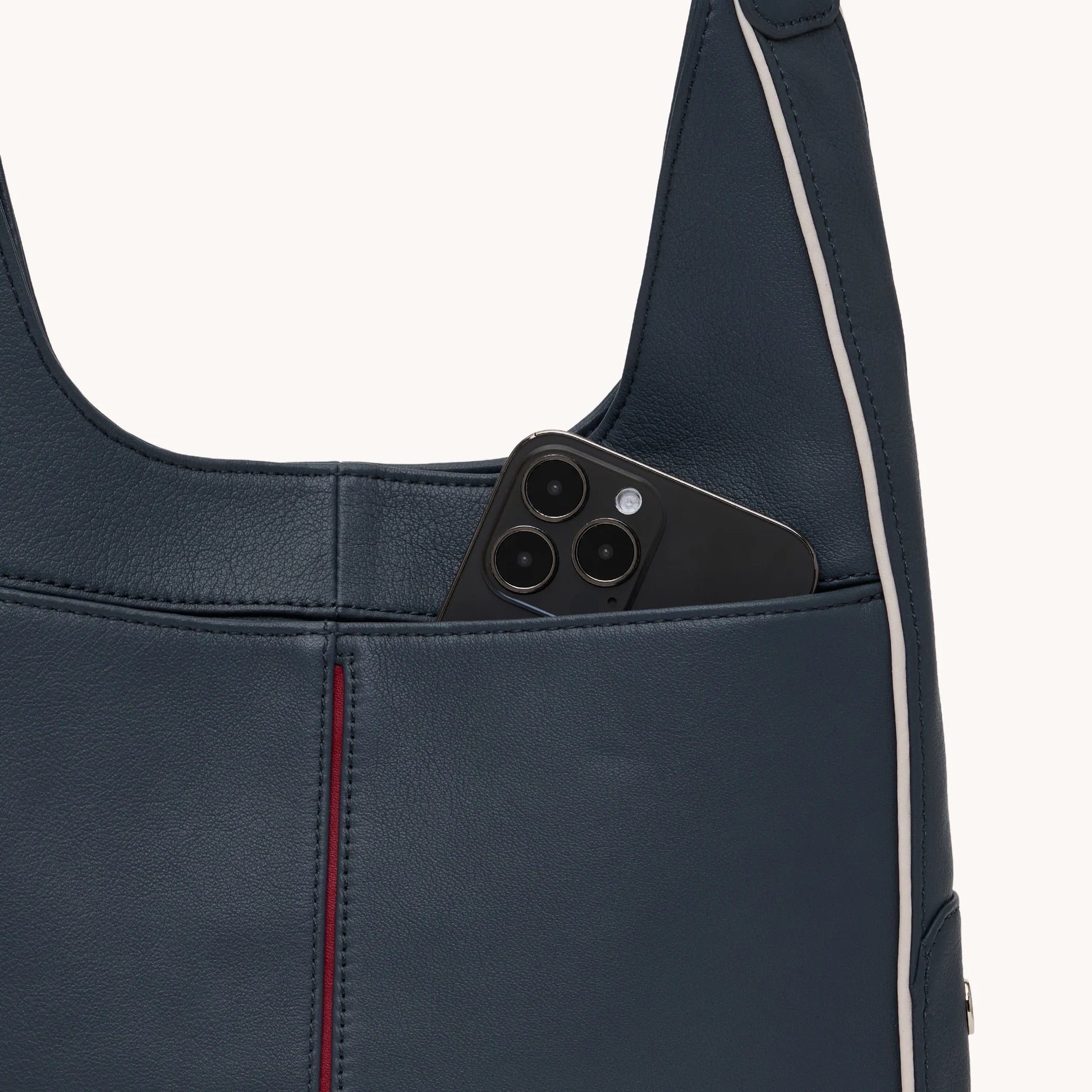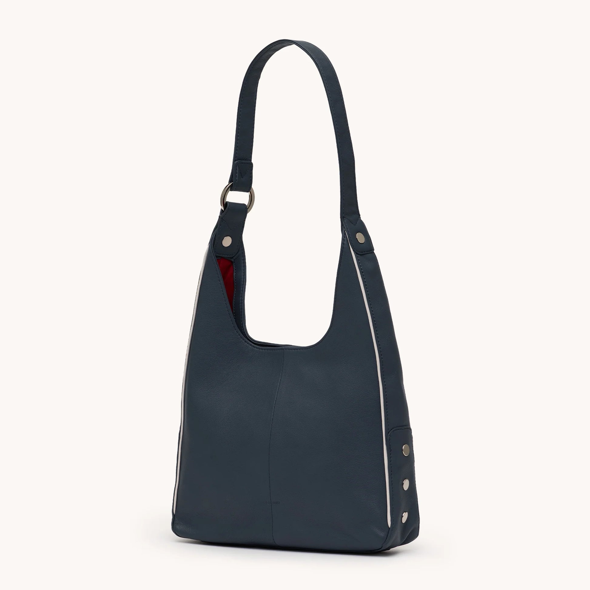Meet our soft but sleek take on a hobo bag that is equal parts elevated and effortless: the Tim. With a long, fixed shoulder strap drop, this approachable bag has a hint of structure for everyday wear - and requires no guesswork. With an easy magnetic closure, side-facing rivets, and a decorative O-ring, this classic silhouette is an instantly recognizable Hammitt.