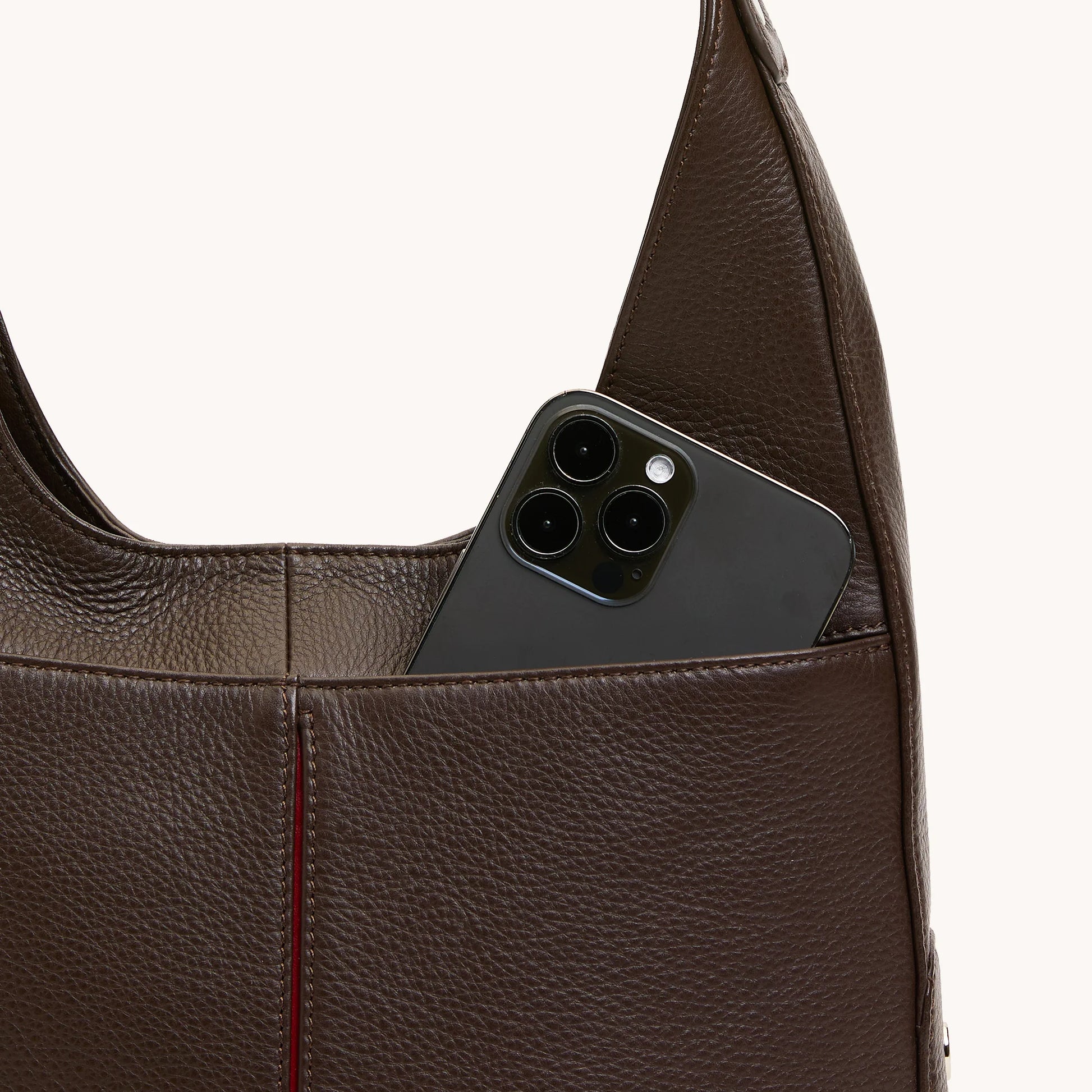 Meet our soft but sleek take on a hobo bag: The Tim. Debuting for Summer 2025, this new design is equal parts elevated and effortless. With a long, fixed shoulder strap drop, this approachable bag has a hint of structure for everyday wear - and requires no guesswork. With an easy magnetic closure, side-facing rivets and a decorative O-ring, this classic silhouette is still an instantly recognizable Hammitt.