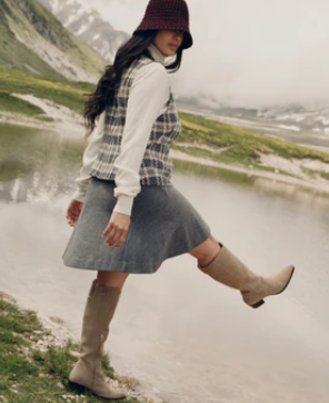 Wear VIRONA H2O’s timeless and flattering design this year and next. Crafted using recycled materials, this tall waterproof boot’s stacked block heel and curved top add a chic upgrade to denim and dresses. Wear neutral suedes out in any weather.