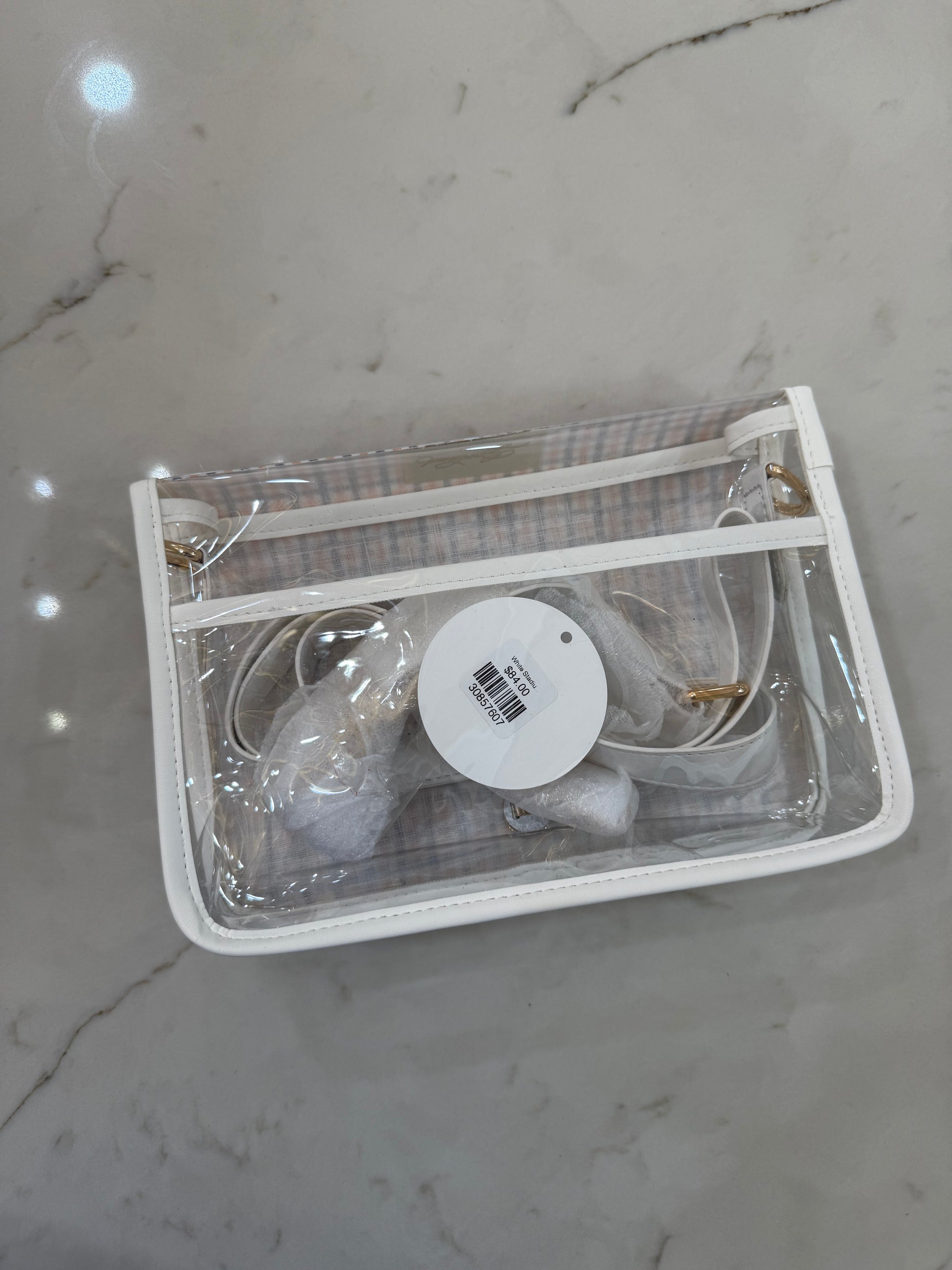 It's clear...that this is the perfect stadium bag! Meeting all standard stadium requirements with 3 of its four sides transparent, this crossbody stadium bag makes a statement like no other! It is adorned with a white enamel bamboo stick, and is trimmed with white faux leather. It comes with an adjustable, coordinating faux white leather strap that is removable. The interior boasts a generous built-in pocket, and a magnetic snap closure. The bag dimensions are 9x5" x 6" x 2.5".